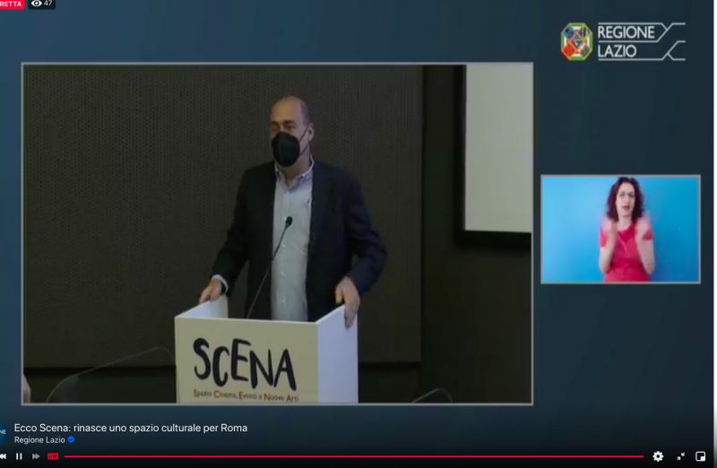 “Il post pademia è appena iniziato, e sarà migliore di ciò che è stato prima: anche Scena si inserisce in questo sforzo – ha dichiarato il Presidente della Regione Lazio Nicola Zingaretti – Un luogo che poteva essere venduto e che noi abbiamo scelto di rilanciare sul tema della produzione culturale, che è uno dei pilastri dell’identità di questa città, che si è formata proprio ai tempi di Film Studio, cioè di quello che era un polmone culturale, un piccolo gioiello di sperimentazione all’interno di un panorama culturale ricchissimo.”